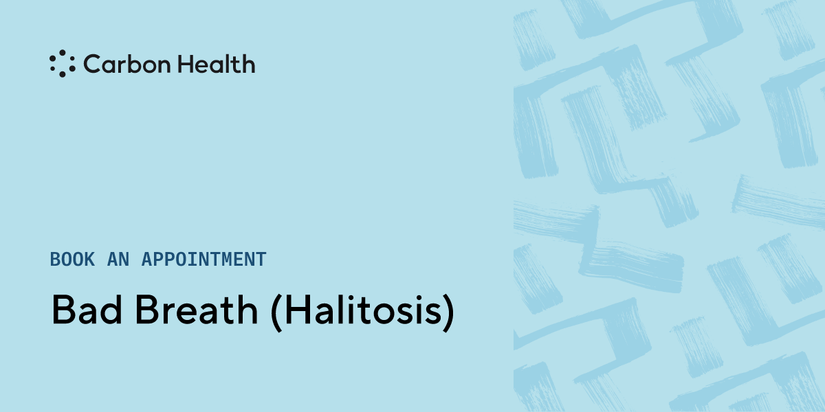 Bad breath normally occurs due to food consumption or a poor state of hygiene. If normal dental cleaning doesn't help, Halitosis may be the cause. Halitosis differs from normal cases of bad breath in that it is chronic and a result of disease or infection. Schedule a meeting with a nearby Carbon Health for the treatment.