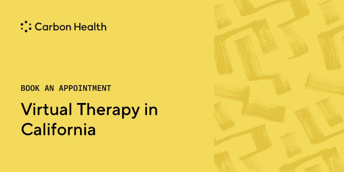 Prices vary, insurance not acceptedLive in California? Carbon Health therapists are here to help you manage symptoms of anxiety, stress, trauma, sleep and wellness, relationship challenges, and more. Our therapists practice cognitive behavioral therapy and focus on short-term therapy designed for your unique symptoms, needs, and personal preferences.