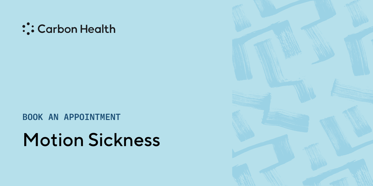 Motion sickness is when a person feels ill or dizzy while in movement. Riding in vehicles like cars, boats, and planes often trigger this condition. Motion sickness is common and will go away on its own, but talk to a nearby Carbon Health about options like medication if you need relief.