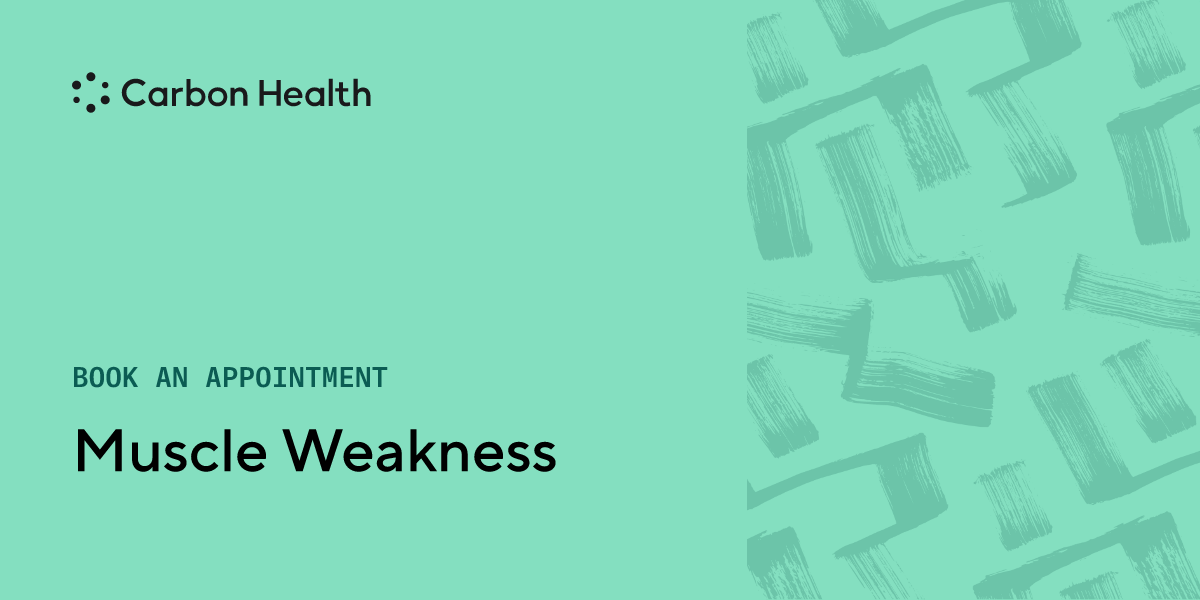 Muscle weakness is when your muscles feel strained or underpowered when trying to carry out everyday tasks. Muscle weakness is not always serious, as even beneficial things like exercise can exhaust your muscles. If your muscle weakness is chronic or out of pattern for your fitness level, speak with a nearby Carbon Health.