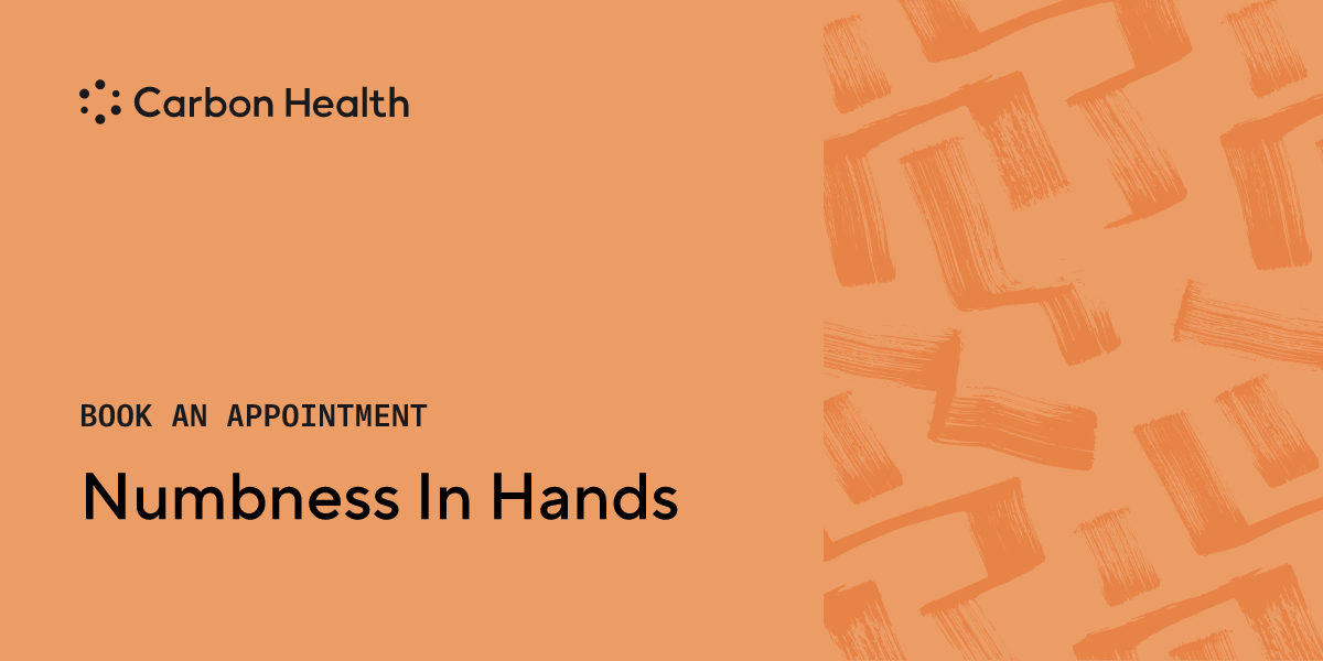 Hand numbness is often a result of constrained blood circulation or nerves in or leading up to your hand. If your hand numbness does not fade within a few minutes, it might be a result of a range of underlying conditions including carpal tunnel, pinched nerves, and diabetes. Speak with a nearby Carbon Health if you experience regular hand numbness.