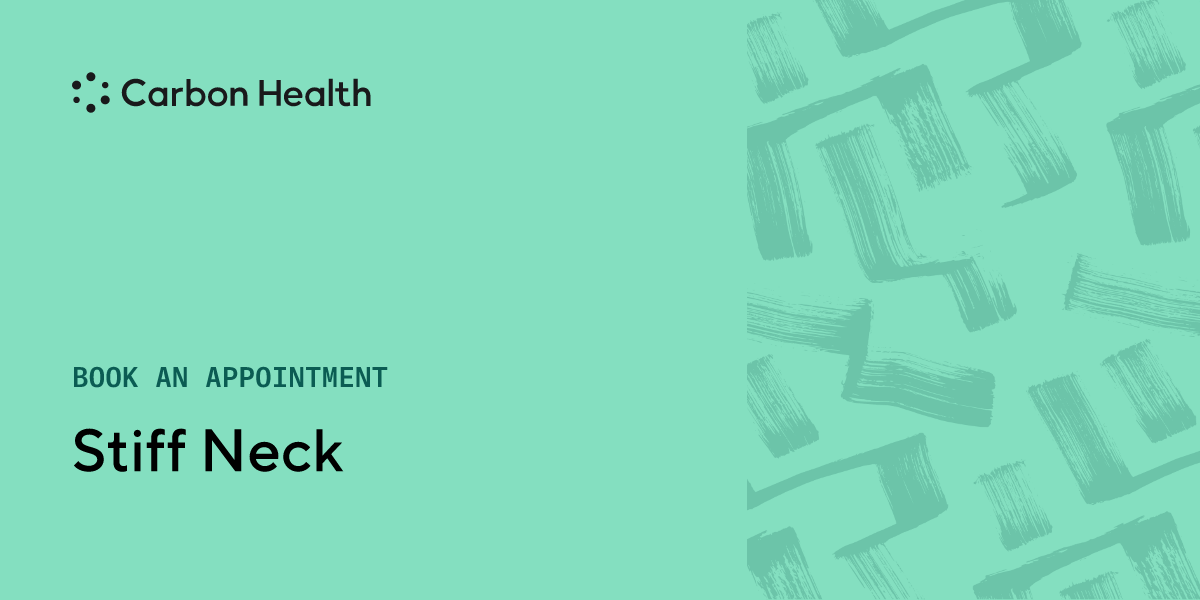 A stiff neck is a sore, rigid neck that's difficult to move. Awkward posture and injury are common causes of stiff necks, so you may want to visit a nearby Carbon Health if symptoms don't fade in a few hours. Seek emergency care if your stiff neck is accompanied by fever, disorientation, or migraines.